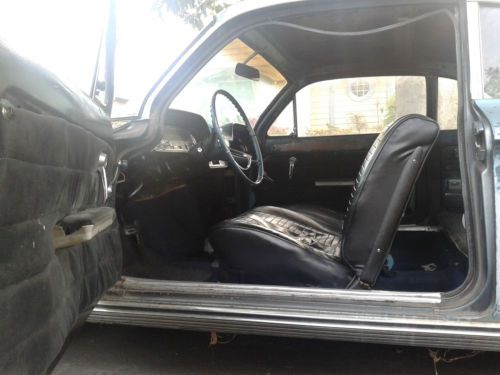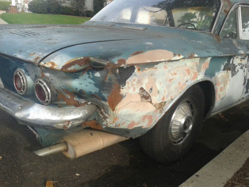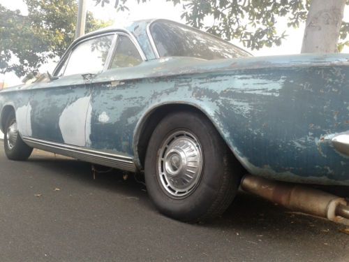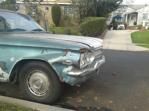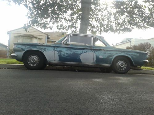 Up for sale is a 1963 Chevrolet Corvair Monza 2dr Coupe that runs and drives and is registered until 8/8/14. The Corvair unlike most American cars has the engine in the trunk and it was coined as "the poor man's Porsche", there are limited amounts of Corvairs left because they were recalled thus making it an even more collectible car. I have to sell the car because I'm moving out of town, I have had the car for about 6 months and within that time I have replaced both carburetors, 2 fuel lines, the oil cooler, fuel pump, fuel filter, oil filter and battery connector cable the rest is an easy fix for the right person. All work was done by a professional mechanic and I haven't driven more than 100 miles since replacing said parts, I also have new in box a heavy duty starter and a new master cylinder. The vehicle is a great car very fun to drive, because of the cars age it doesn't need to be smogged. The car would need to be towed away because the brakes need to be replaced, the starter needs to be replaced but I have a new better starter that comes with the car. The radio/speakers are gone same with the two side mirrors and the headliner. There are some dents and bondo, the hood is painted white and the body is mainly blue but has some other colors as well. The upholstery is torn. The car shifts through gears but kind of lurches, and the tires have around 20 percent life left. The car is sold as is where is, no returns serious bidders only please. 48 hour deposit. I have the title in hand. Any and all questions are welcomed.