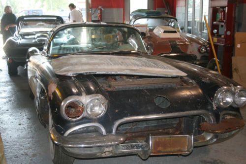 This is an original 1958 Corvette project car last registered in 1972. The car is equipped with a Small Block Chevy and a period correct manual transmission with most of the original polished trim pieces intact. The body is in need of a passenger side quarter panel and fiberglass repair in several other places. The chassis does have some rot in the rear. The car is equipped with full interior, in poor condition, which includes the original steering wheel, seats, dash and gauges. I also have the last valid NY State registration papers. According to the VIN tag, this car was manufactured in St. Louis and is car number 7,292 of 9,168 built in 1958.