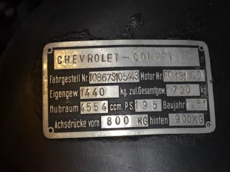 eMail me for more details : bs0mbzfjk@mail.com 1961 Chevrolet Corvette German Export Pedigree NCR