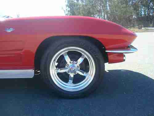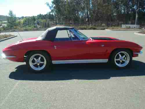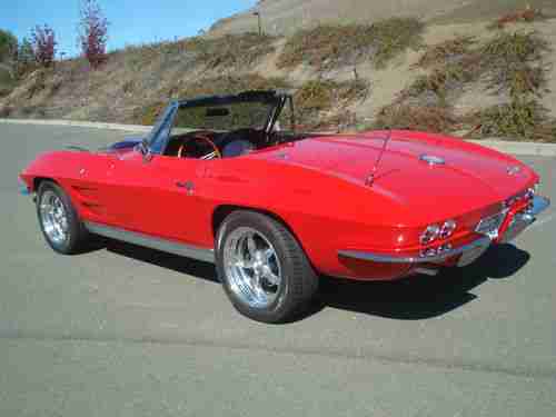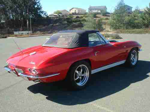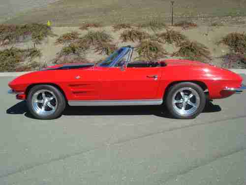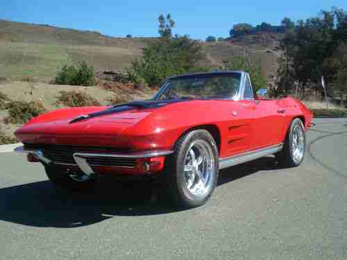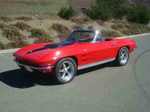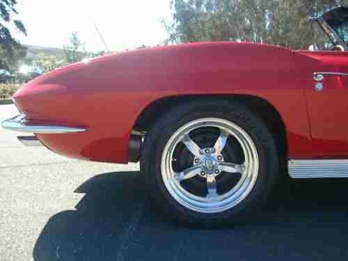 1963 Chevrolet Corvette Convertible. Beautiful "Street Rod" look that really moves and can be for daily or leisure use. This Vette was restored with a 350 small block motor with Demon Carbeutor, MSD Ignition, VBP Mono Leaf Suspension with Bilstein Shocks. Original Factory Interior, Teak Wood Steering Wheel and a Killer Stereo and CD Changer. Rare and Classic Boyd Coddington Wheels specially made for this car. All new brakes and Hurst Shifter from the late 60's. Equipped with a 411 POSI Rear End, all powder coated chassis, complete changed and upgraded to eurathane. Top is in good shape and easy working condition. Starts everytime, runs well. A real looker and really an all around car that can be driven anywhere.