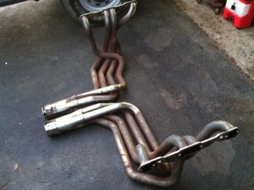 The pair of hooker sidepipe headers are off of my 1968 corvette small block. They have added alot of horse power to the engine but Superstorm Sandy rotted out the muffler and side pipes. The headers are solid. They are pitted and rusted but thick and solid. |