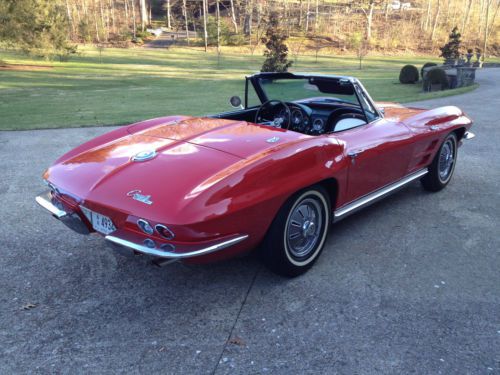 1964 Chevrolet Corvette Convertible - This is a two owner original car that has only had one repaint in its original Riverside Red. Everything else is 100% original and the car has only travelled 43,700 miles. It was purchased on 3/10/64 at Hunter Chevrolet in Hendersonville, NC. The original owner traded in a 1961 Willy's Jeep! ( See the original invoice in photos)