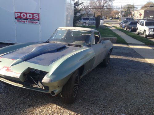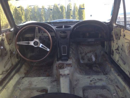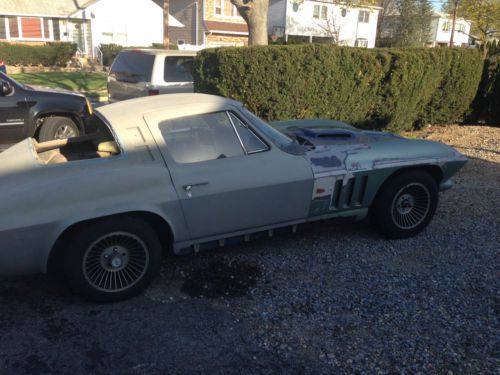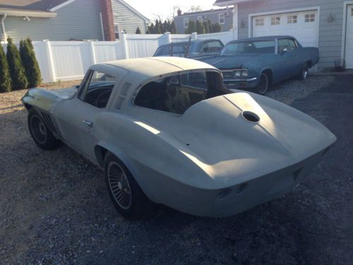 1965 CORVETTE 396 COUPE. NEEDS MAJOR RESTORATION. PARTS I HAVE - 396 BLOCK LAST 6 OF VIN STAMPED IN IT -GOOD SEATS - BIG BLOCK HOOD OEM- REAR CLIP FROM A ROADSTER- GAS TANK- TELESCOPIC TEAK WHEEL UNRESTORED ORIGINAL- HEATER BOX - BLOWER MOTOR - WIPER MOTOR- DOOR PANELS- DASH CLUSTER- 4 SPEED PEDAL ASSEMBLY- I ALSO HAVE AN ECKLERS 1 PIECE NOSE THAT GOES WITH THE CAR. I THINK THE CAR WAS BUTTERNUT YELLOW WITH A BLACK INTERIOR AND A 4 SPEED. NO TRIM TAG. NO TITLE. BILL OF SALE ONLY. SHIPPING IS THE BUYERS RESPONSIBILITY. I WILL HELP WITH SHIPPING ARRANGEMENTS BEST I CAN. AGAIN THIS CAR IS A MAJOR PROJECT. BLOCK STAMPING C-17-5 TO326IF AGAIN THERE IS NO TITLE BUT I HAD TO CLICK SOMETHING TO GET PAST IT. ANY QUESTIONS CALL 516-965-2938 THANKS