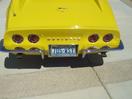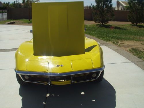 Beautiful, Super clean 1968 Corvette. Vehicle has the original 327 High Performance Engine. Other features include. New Yellow Paint, T-Tops, P/Steering. Telescopic Steering Wheel. Vehicle has New Yellow Paint, New Front and Rear Bumpers, Rally Wheels, and New Goodyear Tires. The following has been replaced recently. Brake Pads, Calipers, Master Cylinder. This Vehicle is ready to drive.