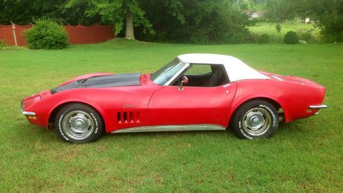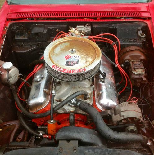 I've owned this car for 15 years. Had always hoped to make it perfect one day it but it doesn't look like that'll ever happen and I'm sadly giving up... it's time to pass it on to a new owner. Car needs restoration exterior and interior, it's far from a show car. The engine starts right up though with no smoke or knocks. The car originally had a 390hp 427 engine but it currently has a good sounding 396 under the hood (believe it's a 68-69 year 396). The car was a driver when I last parked it a couple years ago. Think it could be made a nice driver again without much work, going back to original would take more work. The car as small flares and Eckler's lights. Sitting for so long has apparently got air in the brakes as the peddle is very soft. I use the e-brake to drive it around the yard... and I plan try and bleed the brakes... but I would go ahead and expect to have it trailered home. A hard top is on the car now, the white soft top is still there as well. From what I can see by jacking the car up the frame looks in good shape and rust free. It is a 4-speed. No trades, sorry. Thanks for looking. Please let me know if you have any questions. Good luck!