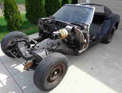This auction is for a 1972 C3 Corvette Project/Parts car. The interior, engine, transmission and front clip have been removed. The rest of the fiberglass is in good condition with no cracks. The birdcage is in fair usable condition with the worse section being the top right corner that has some moderate layers of rust, but is still usable or an easy repair. The bottom of the birdcage looks good. The windshield is intact with minor chips on the bottom edge. Includes power brakes with brake pedal and all the calipers (although they probably need to be rebuilt). The frame was rusty, but has been heavily reinforced and welded. Also has differential and driveshaft. All suspension is included and looks to be in good condition. Car was a base K-Code 350/automatic. The rims are not originals, but the tires hold air with no problems. I have a clear Michigan Title with the car. If you have any questions or need specific pictures, please let me know. Low starting bid and No-Reserve. I can deliver anywhere in the US for a fee, please e-mail me for specifics on your location. Car is located in Livonia, Michigan.