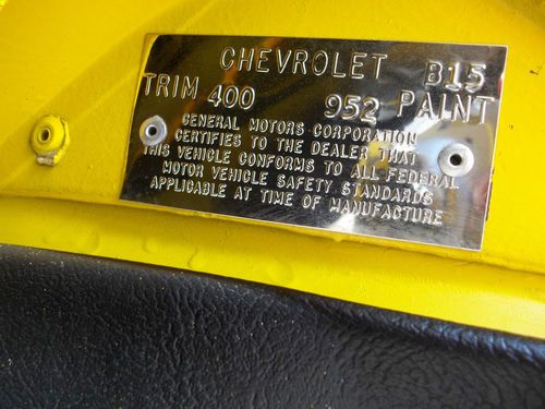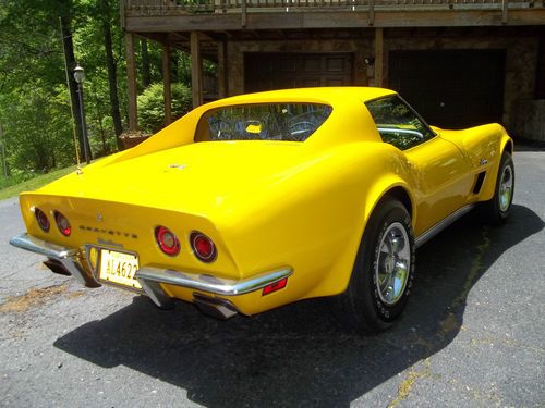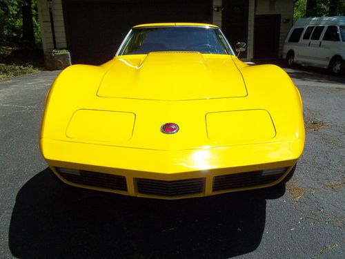 This car has been lovingly maintained and shown in preservation classes for years at local and regional corvette shows. Its original 40 year old yellow paint is in great shape and looks beautiful. This was the last year for the chrome rear bumper and the first year for the plastic front nose. The body is original paint with factory over spray in all the right places. The interior looks great and there is virtualy no wear and no cracking on the dash. The left door panel has a minor crack but other than that the door panels are great. Carpet shows no wear. Very clean car, seats look new but are 40 years old. All of the gauges, radio and clock work. Clock is stubborn sometimes. Power windows work great but the left stops about 1/2 inch from the top. While all the chrome looks great, it is 40 years old and areas such as the exterior door handles and rear bumper show that age but they still look great. The car has been properly serviced and detailed throughout the 40 years. Tires are excellent. It needs nothing! These cars got used up and it's rare to find one in this condition.