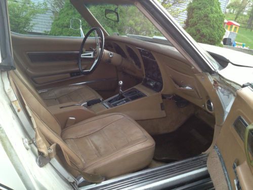 1974 Corvette Stingray T-Top 1974 Corvette Stingray T-Top with Deluxe Interior. This car is in nice daily driver condition with the original numbers matching 350 ci engine with 4 speed manual transmission. The engine has had some work done to it and seems to be pushing around 375-400hp. It has Air Conditioning, but it is not working, I have not tried to recharge it. The car has the tan deluxe interior with power windows and power brakes. The paint has some cracking in some spots as seen in the pictures and could use being touched up. It has a newer style aftermarket rear bumper that is not painted. Car has 103,481 original miles.