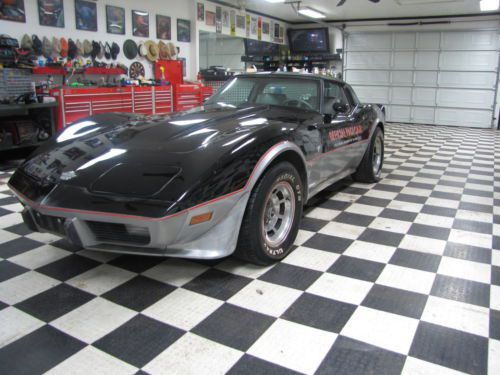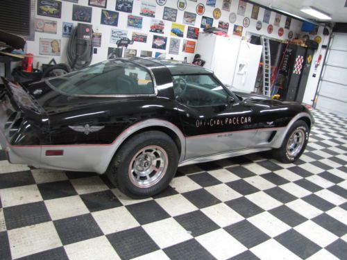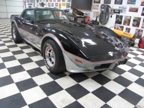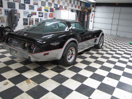 Up for sale is an extremely rare 1978 Chevrolet Corvette silver anniversary Indy 500 Pace car. This car has ACTUAL 64000 miles. It has sat in a storage building for many years. It is a 2 owner car purchase by the same family. This is a true California car with actual miles. The paint on this vette is in good shape for a daily driver, it is not in show condition. The body is immaculate and the interior is in fair shape with some stitching coming apart. The carpet is intact and decent but should be changed out. The glass is all in excellent shape. The dash is excellent, the T-tops as well. Mechanically she is in excellent shape. She starts right up, no smoke, no leaks and no rust underneath. She runs and drives very nice and can be driven while restoring her to the original Indy Pace car. This Corvette will need the decals replaced, carpet and eventually paint and possibly interior. The tires on the car are in excellent condition but are very old and should also be replaced. All in all, this is a great opportunity to own an extremely rare and classic Indy 500 Corvette pace car at a fraction of what it is worth. Please email or call with any questions 530-519-2195. The car can be stored for a reasonable amount of time without cost. I will assist in shipping all I can but the cost is the responsibility of the buyer. On Mar-16-14 at 16:14:57 PDT, seller added the following information: PLEASE NOTE !!! The VIN on this car is 1Z87L8S904069. I inadvertently left out the engine identifier digit being an " L ". This is an original L48 car, meaning 220 hp original as driven in the Indy 500, NOT an L82. |