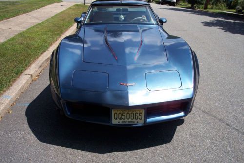 1980 Corvette-automatic-Mostly unmolested original I purchased aprox. 9 yrs. ago from a women who said she owned it aprox 18 years & Purchased from original owner . I believe it to be an L-82 with original motor 230HP 350 Motor & has L-82 emblems ,a,duel snorkel air cleaner & aluminum finned valve covers,I do not know how to compare matching numbers---Has Aftermarket working am/fm cassette player Positive-350 believe to be original engine,runs & Drives well w recent spark plugs,dist cap,rotor & coil,New SS brake calibers,shoes.wheel brake lines,master cylinder & brake booster professionally installed,paint 4 years old with imperfections.New tires with less than 10 miles--power windows work fast-New windshield wiper motor,Mirrored t-tops & also have hardtops without mounting hardware I never tried to use.Restored some interior trim minus carpet & seat covers.Everything else is believed to be in working order except as stated below Negative.A/C never worked(Have new compressor belt) but never installed to troubleshoot,Vaccume headlights slow or non moving,probable vaccume leak (Have new seals & boots for accumulators---clock does not work--Parking brake intact but needs attention/adjustment---power door locks never worked since i owned,I never troubleshooted--Driver seat with rip--slip covers used & I never addressed--origional carpet shows w medium wear----Speedometer just stopped working I was told it is probably the regulator between both cables which needs to be rebuilt or replaced.---Temperature gauge may be faulty-a ,right turn indicator bulb needs replacement,top mask of power antenna broken off & lastly transmission leaks some fluid when srored over winter but not after being driven every few weeks. I might have some other parts & touch up paint which will go with car.any questions call Randy 973-299-1736