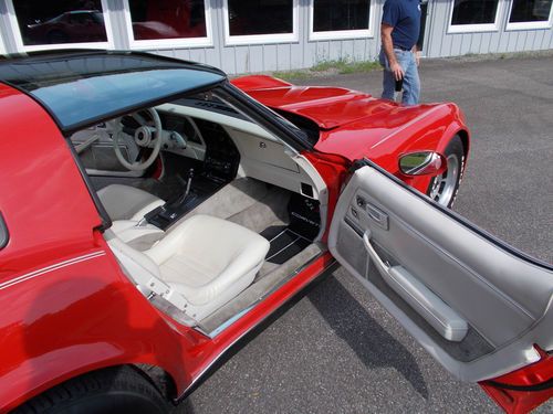 This Corvette has had the same owner since 1988. Was used for cruise nights and car shows. Illness forced sale of this Corvette. It is a great color combination with the red exterior and oyster interior.