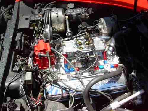 dual exhaust, Pro Comp intake, Holley street avenger 770 cfm carb. Frame and bird cage in