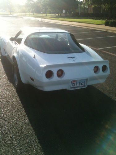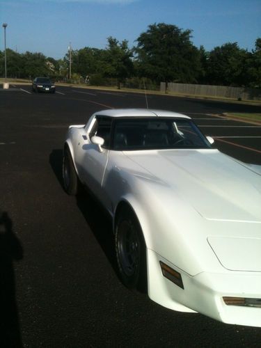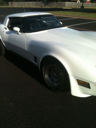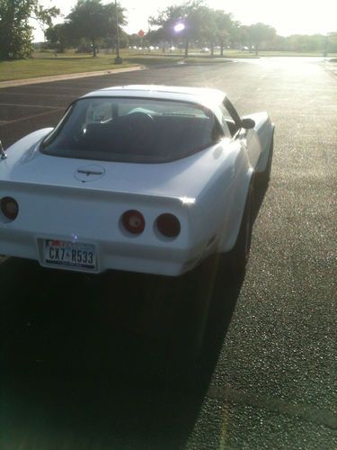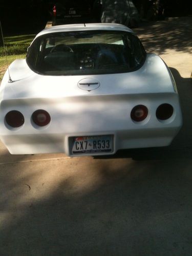 1981 Chevrolet Corvette white with blue interior. Good condition and mechanically sound. No body damage no rips or tears in the seats or dash. Sought after factory 4 speed with factory air power windows power locks and power brakes the vehicle was in storage when I purchased it two years ago. Car is for sale locally and I reserve the right to end auction if car sales. $500.00 deposit within 48 hours of auction close balance within 7 days. Cash money order or cashier checks accepted. Buyer responsible for shipping. I can be contacted at 254-931-4844.