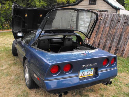 Nice 1986 low mileage Corvette Coupe. 81876 miles. The engine is the tuned port, fuel injected L-98. In 2010, $2000.00 was put into the engine. A bearing had spun, so the engine was taken out and steamed cleaned the block and the crank was turned down .010 and new rod, main and cam bearing were put in. New high volume oil pump was also put it in as were new injectors (Ford Borg Warner). They atomize better with 3 orifices as opposed to the single for the Vette injectors. New water pump, thermostat, timing chain, serpentine belt, tensioners etc. Also a new rack and pinion. I traded valve covers with our 73 Blazer as I thought the orange color gave the under the hood look a little more color and people liked it. The oil pressure is very high all the time having to do with the high performance oil pump and of course the new bottom end and has a heavy duty radiator and a radiator boost fan in addition to the regular radiator fan. (fans are designed to turn on at 229 degrees), Corvette want high engine temperatures for best performance. The new thermostat is 190 degrees. It has an engine oil cooler and the performance handling package and includes the Delco-Bilstein shock absorbers. It has power drivers seat, power locks, power windows, removable plexiglass roof panel (blue tint) which is weather checked (looks like little cracks) from age but still very service able), Electronic air conditioning control and converted to 134 and blows cold. It has cruise control, the stereo system is Delco-Bose and the radio/CD player is after market Sony. The retractable antennae works fine. The transmission is the Turbo Hydra matic 700 R-4 4 speed automatic. The car fast and the engine has a nice powerful sound to it. The performance handling package (basically heavy duty) gives it a slightly higher stance than the regular Corvette 12821 were give this option. (looks Cool). We averaged around 14 to 17 MPG in the city and up to 20 to 24 in the country. It has a new block heater. We never ran it in the winter as it was stored in a heated building. There were only 128 Vettes made with the blue metallic color. The tires have maybe up to 20000 miles of wear left on them. They are the larger P255/60VR16. It's a real fun car and handles and runs superbly. There are a couple of dings and I've included them in the photos. The major one is around the upper part of the riders side wheel well which shows it in photo #8. It needs to have a little more professional attention to it and the right turn guide light lens needs to be replaced with an original lens. Photo#9 shows the rider's side rear where the paint had pealed off slightly. Photo #10 shows chips by driver's door. Photo #11 shows a scuff on rear driver's side and photo #12 show chips above driver's side wheel well. The interior color is called Graphite. Photo 20 and 21 show the roof cover off and stored in the rear. We hate to part with it but my son is in college now and I'm a disabled Vietnam vet and we need the money, so it has to go. Remember this is a 28 year old car, but I believe one of the finer examples around, most of it's life has been in storage. The NADA guide values this Vette at $19750 for high retail. The average retail is $11700 and low retail is $7282. Value wise we feel this Vette is somewhere between the high and average retail and way, way above low retail in value. Purchaser will need to put a down Payment of $500 within 24 hours to Paypal. The remainder at pickup or within 7 days by way of cash or certified funds. The sale is for "as is' where is". The vehicle will need to be picked up within 2 weeks as we are loosing our storage for it. If payment in full is not made within 7 days then after the 7th day it will be relisted for sale or sold to the next highest offer. I can deliver the vehicle at a cost of $1.00 per mile, please contact me if you have plans for that so we can make arrangements. We have this car for sale locally so the Ebay listing may end early. Thanks for looking and if you have any questions please contact me.
