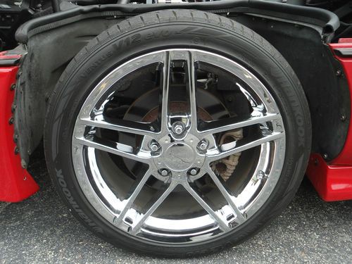 2010 Z06 rims 9 1/2" X 18" fronts 19" X 10 1/2" rears with new Hankook Ventus V12 Evo 245-40 ZR 18s front and 275-35 ZR 19s rear.