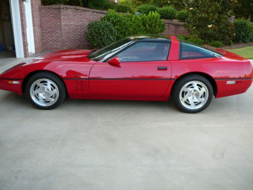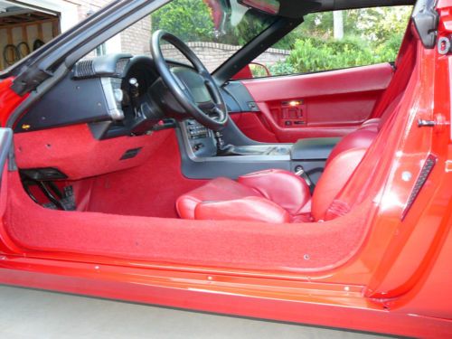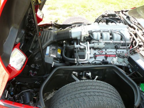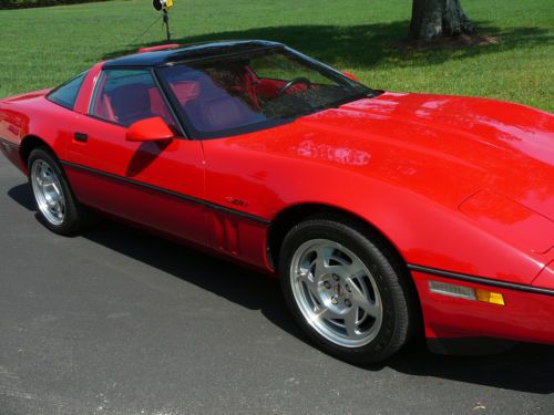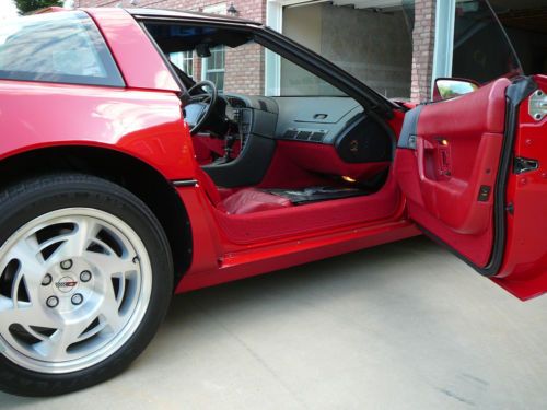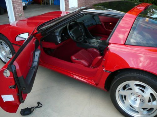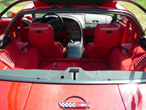 This is a red on red glass roof 8,958 original miles ZR1 that factory came with an all aluminum 5.7 liter 4 cam 32 valve engine rated at 390 hp. 6-speed transmission and self-adjusting suspension. It is in perfect showroom condition, original down to the air in the tires --- nothing has been changed. Runs and drives like new. I purchased it in 1993 from the origianl owner and it has always been kept in a climate controlled garage; never scratched or harmed anywhere. Have all original manuals and window sticker.