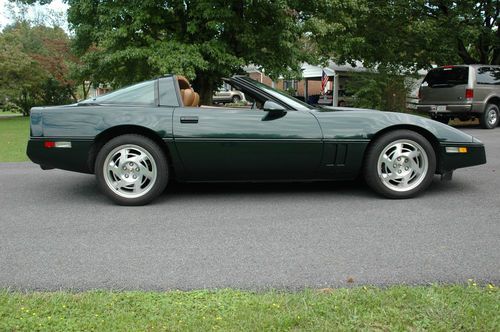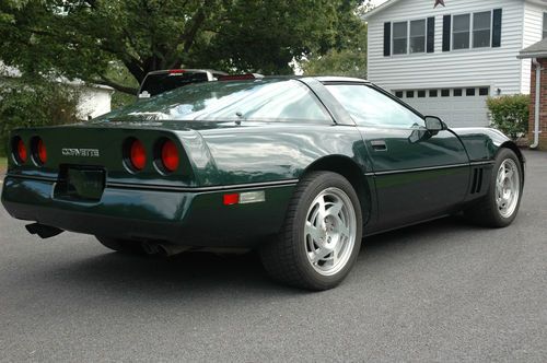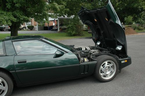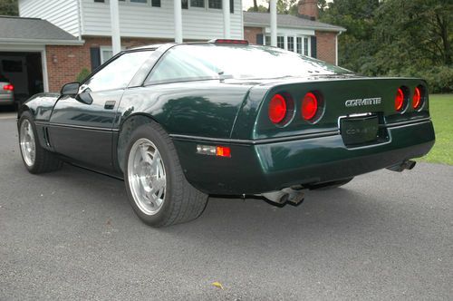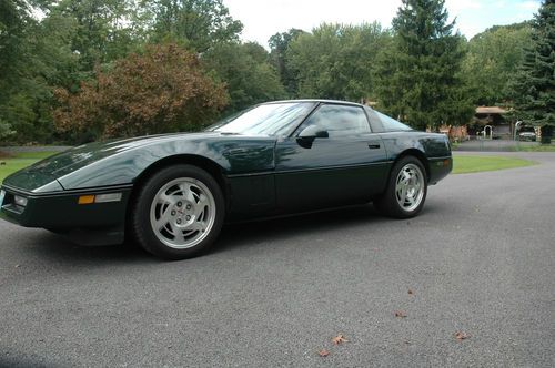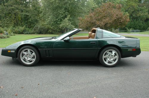 1990 CHEVY CORVETTE HATCHBACK WITH TARGA TOP DARK GREEN EXTERIOR WITH CAMEL INTERIOR, GARAGE KEPT NEVER DRIVEN IN RAIN OR SNOW SMOKE FREE, I HAVE HAD THIS CAR FOR 11 YEARS AND ONLY SELLING BECAUSE I HAVE BOUGHT A NEWER MODEL AND DO NOT NEED TWO VETTES, WOLF COVER INCLUDED. NORMAL WEAR ON DRIVERS LEATHER SEAT FOR AGE OF VEHICLE COLD A/C GREAT RUNNING CAR! TIRES HAVE AT LEAST 50% OF WEAR LEFT