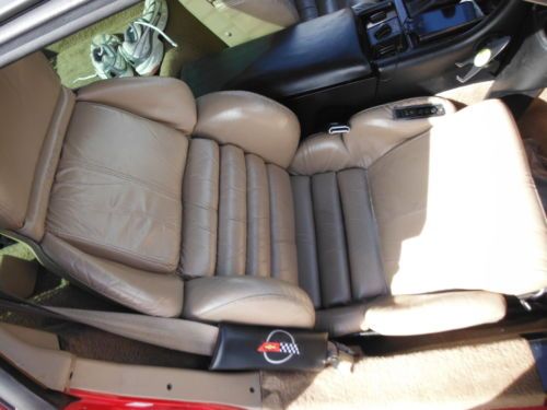 Head Turning 1992 Corvette with 350 LT1 (rebuilt) and 6 Speed Manual. Bright red with Tan Leather in Great overall condition. Engine rebuilt with new heads, slight cam and roller rockers 10k miles ago. New Scat clutch and flywheel, water pump, hoses, racing radiator, performance chip, battery and altenator, Petris Optispark, fuel injectors, and Catalysts. K&N Air filter. Short Throw shifter. Magna Flow Exhaust with ZR1 Tips. ZR1 Rims and new Goodyear tires, lifetime alignment. Cross drilled rotors with ceramic pads. Interior redone with new carpet, weatherstriping, wood kit, and reconditioned seats. Upgraded Stereo with Navigation, blue tooth and backup camera. Viper Alarm. Hid head and foglights. Power everything and it all works. Both tops (tinted and painted), AC blows very cold. Completely serviced and ready to go anywhere. Please feel free to have it inspected. This is a super nice Covette. Fantastic performance, runs great and drives like a dream. Serious only please text or email any questions to Todd at 951-235-2116 (no calls accepted) if you have questions. Happy bidding and Thanks. |