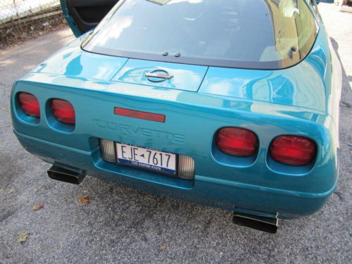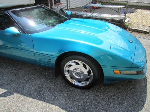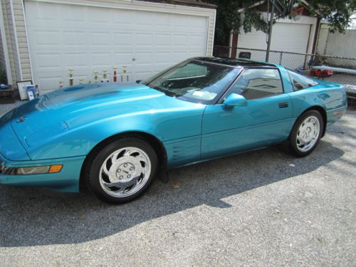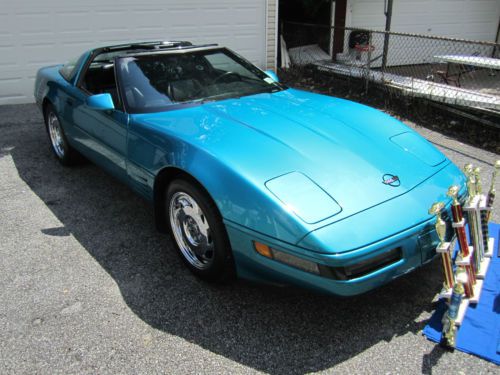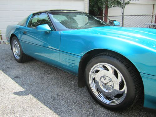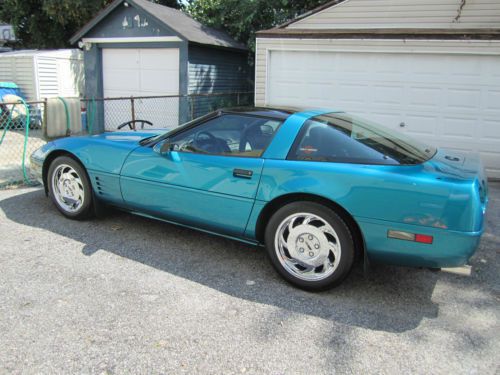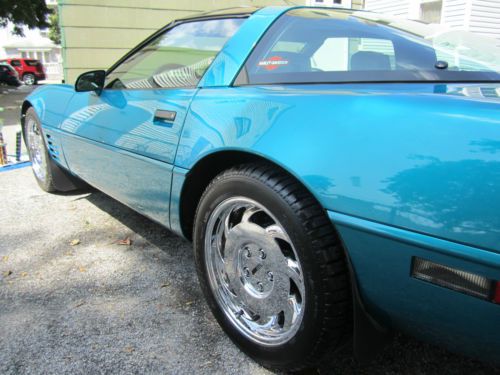For your consideration, first time ever offered for sale in 21 years, is my absolutely gorgeous, show quality, exhilarating to drive, bone factory stock, meticulously maintained, 1993 Chevrolet Corvette, that will put a huge smile on your face every time you drive it. This car is one of only 1305 Corvettes finished in high gloss BRIGHT AQUA METALLIC paint in 1993. The paint is original and , as you can see in the photos, in incredible condition, as the car has been garaged and covered since it was purchased at Malcolm Conner Chevrolet in Paramus, NJ in 1993. This car is as close as you are going to get to a time capsule. The sport electric leather seats have been covered since new, and show as new, with absolutely no rips or tears, or wear to the side bolsters. The rest of the interior and all dash, carpeting, and door panels, are also in near new condition. I am the second owner of this beautiful Corvette, and aquired it from a personal friend, and experienced auto mechanic, about 8 years ago. The odometer now reads under 55,000 miles, and the car is powered by Chevrolet's 5.7L, 350ci, LT1, 300HP, power plant, one of the most durable and time tested engines to ever be produced by General Motors. The motor has seen only Mobil 1 Synthetic oil since new, and all oil changes and routine maintenance have always been religiously performed. Mechanically, the car is 100%, and runs strong and powerful, and the six speed manual transmission shifts perfectly. Finding a C4 corvette, with a SIX SPEED MANUAL transmission, in this type of condition, is getting near impossible. There are absolutely no excuses for this vehicles mechanical condition.