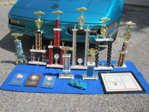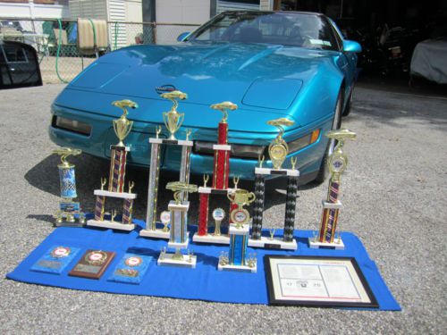 Cosmetically, the car speaks for itself, and has won numerous local car show trophies, as well as trophies from prestigious, Corvette only, car shows sponsored and judged by the National Corvette Restorers Society (NCRS). The car always scores in the high 90's point range, being judged on it's originality in the factory stock category. Most judges have a hard time believing the paint is GM original. As you can see in the photo, the tinted acrylic top is in like new condition with absolutely no "spider web" lines, a very common problem with these tops. Also both flip-up headlights work quickly and in perfect unison, another common problem with the C4's. The high mirror finish chrome wheels are gorgeous, and really complement the bright aqua metallic paint, giving the car the definite WOW factor. However, if you prefer the original brushed aluminum stock wheels, I still have them and will include them in the sale of the car. I have also always kept rubber mats over the factory carpeted mats, so the originals are still in great condition. Also included, and shown in 1 photo, is a roll bar/frame stiffener that bolts into the roof, helping to maintain frame rigidity and a smoother ride when the glass top is removed. This was a $500 after market item which I am including in the sale. Of course, all trophies also go with the car to the proud new owner. FYI - The sticker price on this car was just under $39,000, and that was over 21 years ago!!! My reasons for selling the car now are simple, I have a daughter about to attend graduate school at George Washington University, and I could use the extra cash. Also, I just found out that I will be losing my indoor storage for this car in the next few weeks, and I would really hate to see a car in such pristine condition have to sit outside over the harsh NY winter, as it has been a garage queen it's entire life, and really deserves to be cared for by someone who will appreciate and enjoy it as much as I have for the last 8 years. I would urge anyone to come and inspect this vehicle in person, and I will take you out for the ride of your life!!! YOU WILL NOT BE DISAPPOINTED!!! PLEASE FEEL FREE TO CALL TOM @ 917-923-9381 WITH ANY QUESTIONS, OR TO SET UP AN APPOINTMENT TO INSPECT THIS BEAUTIFUL VEHICLE IN PERSON. THANK YOU FOR YOUR CONSIDERATION. |