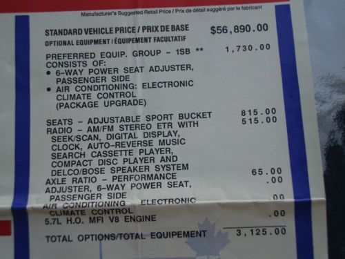 plugs, Plug wires, Fuel pump and sending unit, Air cleaner element, ZR1 chrome