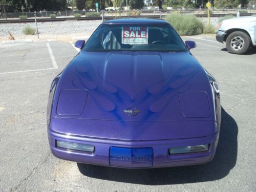 This is a Beautiful car!!! 1996 2 Dr. Coupe Chevrolet Corvette Gorgeous New Paint! Purple on Purple Metal Flake Pearl Ghost Flames Front to Back! Small Block Chevy Engine 6 speed Automatic Trans 130,000 original miles Runs Good! \ Interior is Black with Grey leather Seats All power Windows, Locks, Seats Removable Hollywood Top?? Rubber is like new! Aluminum Alloy wheels Title is clean! Easy paper work! READY TO GO!! Preferred Buyer Inspection and Pick-up Cash only please Cashiers check! 500.00 Immediate Down with Pay Pal Full Payment at Vehicle Pick-up! |