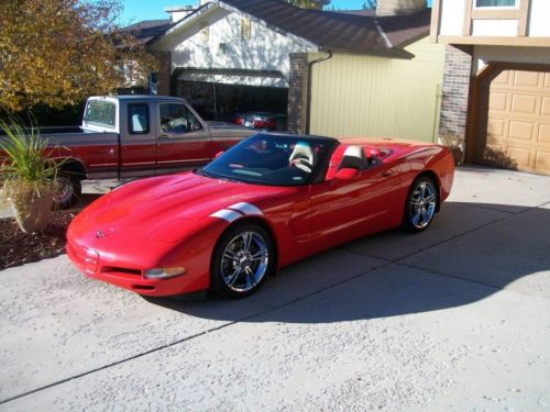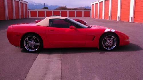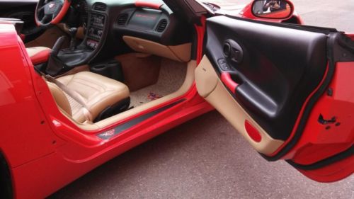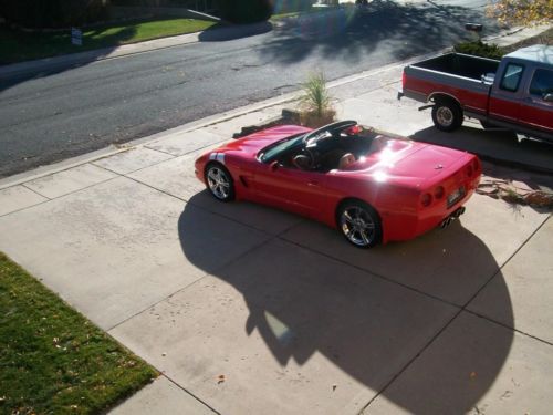 1998 Torch Red Roadster, second year of C5; but first convertible year of C5; First trunk in Corvette since 1962 and 1998 Motor Trend Car Of The Year! - 68,400 original miles;Numbers matching original car; Window Sticker and Build Sheet laminated copies from National Corvette Museum; LS1 345 hp engine; 6spd; Z-51 Performance Suspension; Oak interior and Top, and 10 CD player option. Real nice C5 and 30+ mpg on the road. Only driven 3,115 miles in the last 2 yrs. Added Grand Sport inspired Hash Marks to highlight the Torch Red; comes with an excellent condition extra Torch Red C5 Hood. Runs great and just went on 165 mile cruise last Sunday and hugged the road great. Great gift for a wife........my wife loved to take this vette for top down rides. Car in great running condition, but being sold as is. If you like to do car shows I will provide a complete storyboard for the car , A/C ice cold, Always garaged, Custom paint/graphics, Custom wheels, Excellent condition, Looks & drives great, Must see, No accidents, Non-smoker, Upgraded sound system, Well maintained