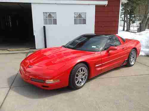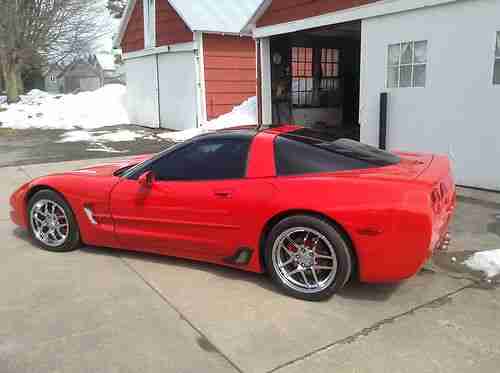 For Sale: 1998 chevy corvette torch red in excellent condition. This car has been well maintained with mobile 1 oil change every 3000 mile also change at the beginning of each season. It is only taken out of storage in june and put away in september. This car has a few modifications. These include b&b exhaust with an x pipe and big 4 inch tips that give it a nice growl. K&N air filter, msd plug wires, after market z06 rims with 315/30/18 zr ties with less than 600 miles on them in the rear. I hit a curb last summer on passenger side, the rim, tires and brakes where replaced with no body scratches or damage. It has block out grills in front, sides and rear for air dams. The radio was replaced with the corvette pac system so the Bose system is still in use. Jvc system with amp and wedge in back covered with the carpet. The car has been insulated to reduce road noise.The car was professionally tuned and runs about 425 hp. It drives straight and strong with no issues. My wife and i don't drive it much anymore, we put about 500 miles on it last year with the corvette club and parades. The car is a 98 so don't expect brand new but it is in awesome condition,people see it and cant believe its a 1998. Any questions please ask! We have a 1966 corvette that we plan on using for club stuff so we dont need this one. The car is being sold locally so we reserve the right to stop the auction at any time.