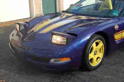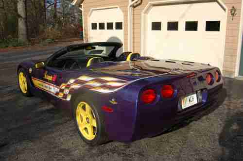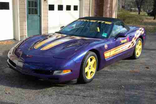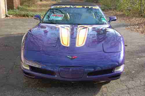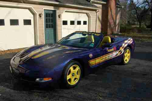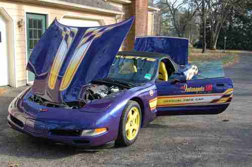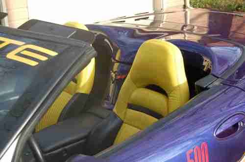 +I AM THE SECOND OWNER OF THIS BEAUTIFUL INDIANAPOLIS 500 PACE CAR. IT WAS ORIGINALLY SOLD BY VANDERGRIFF CHEVROLET IN ARLINGTON, TEXAS. I PURCHASED IT FROM CORVETTE WORLD IN CARROLLTON, TEXAS, 07/03 02. IT HAS BEEN GARAGED, AND NEVER EVEN SEEN A RAINDROP. IT COMES FROM A SMOKE FREE, AND PET FREE ENVIRONMENT. THE OWNERS MANUAL AND VIDEO ARE INCLUDED. IT HAS A SMALL PAINT CHIP ABOVE THE LEFT REAR FENDER, AND HAS HAD ONE MINOR REPAIR ON 02/27/09, CONSISTING OF A TINY HOLE IN THE FIBERGLASS, FACING THE GROUND (ACTUALLY OUT OF SITE) UNDER THE PASSENGER DOOR FRAME. THIS WAS CAUSED BY THE TIEDOWN RACHETT, WHILE IN TRANSIT FROM DALLAS TO MEMPHIS. EVEN THOUGH IT DIDN'T SHOW, IT WAS DONE IN THE MATCHING COLOR AND CLEAR COATS.... OTHER FEATURES: TRACTION CONTROL SYSTEM-4 WHEEL INDEPENDENT SUSP-POWER SPEED SENSITIVE RACK & PINION STEERING-LIMITED SLIP DIFFERENTIAL-EXTENDED MOBILITY TIRES W/ TIRE PRESSURE MONITOR SYSTEM-REMOTE FUNCTION ACTUATION SYSTEM-PASS-KEY 11 THEFT DETERRENT SYSTEM W/ HORN ALARM-POWER HEATED OUTSIDE MIRRORS-HEATED REAR WINDOW GLASS-RETRACTABLE HALOGEN HEADLAMPS-DAYTIME RUNNING LAMPS-ANALOG ULTRAVIOLET LIT CLUSTER W/ DRIVER INFORMATION CENTER-INTERMITTENT WIPER SYSTEM-TILT LEATHER WRAP STEERING WHEEL-ELECTRIC REAR WINDOW DEFOGGER-INDY PACE CAR PACKAGE-EXTERIOR DECALS-ALUMINUM YELLOW PAINTED WHEELS-MEMORY PACKAGE-FLOOR MATS-SPORT SEATS(DUAL POWER)-ACTIVE HANDLING PACKAGE-FOG LAMPS-ELECTRONICALLY TUNED AM/FM RADIO W/ SEEK SCAN, AUTOMATIC TONE CONTROL, COMPACT DISC PLAYER, SPEED COMPENSATED VOLUME W/ BOSE SPEAKER SYSTEM-DIGITAL CLOCK-ELECTRIC DUAL ZONE AIR CONDITIONING/HEATING...PAYMENT- DEPOSIT OF $2000 TO PAYPAL WITHIN 48 HOURS OF AUCTION CLOSE. FULL PAYMENT WITHIN 7 DAYS OF AUCTION CLOSE....SHIPPING-BUYER RESPONSIBLE FOR VEHICLE PICKUP OR SHIPPING. ALL FUNDS MUST CLEAR OWNERS BANK ACCOUNT BEFORE VEHICLE LEAVES. EMAIL WITH CONTACT PHONE NUMBER FOR FASTER RESPONSE WITH ANY QUESTIONS. THANK YOU FOR YOUR TIME, AND CONSIDERATION. HAPPY BIDDING, WAYNE