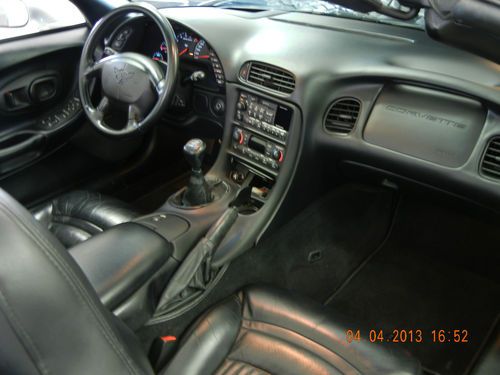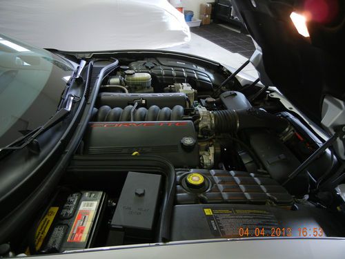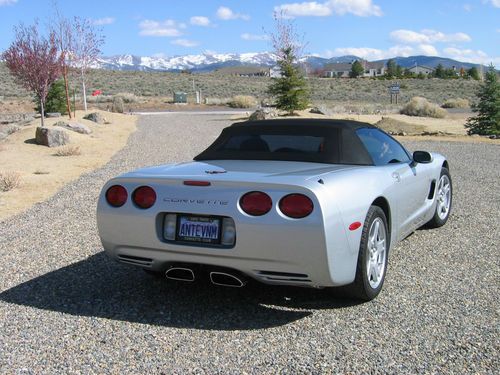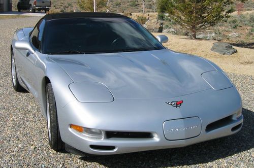 1999 Corvette Convertible for sale by second owner (6000 miles), always garaged and covered. 41,658 miles well cared for. Sebring Silver with black top and interior. Fully loaded with Magna Flow exhaust/speedway tips, Snooper shadow 360 Stealth Radar with Remote Antennae, Tinted Windows, 5.7 liter 345 HP Sequential Fuel injection V8 engine, Traction control, 4 wheel independent suspension, Aluminum 5 spoke wheels, Remote function actuation RFA system, Power heated outside mirrors, full folding top w/heated rear window glass. Retractable Halogen headlamps, AM/FM Stereo cassette with Bose speakers, Analog Ultraviolet Lit cluster w/driver info center, compact disc changer, Active handling system, Heads Up Display, Dual Zone Air Conditioning, Six-way passenger power seat, memory package.