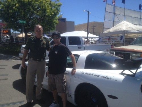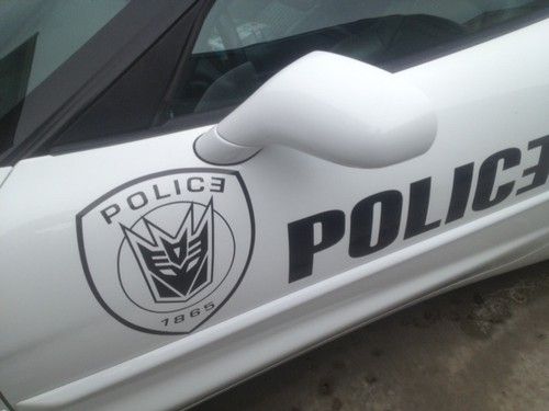 I'm selling my Decepticon theme car. This is a 1999 Chevrolet C5 Corvette. It has 90,XXX miles on it with flat black C6 wheels and tires. It has the APR race wing ($1,500). The engine and trans are in perfect running order. The oil is changed at least every 3,000 miles with Mobil 1. This car gets more attention then any vehicle I've ever had. I met with the Carson city sheriff last Friday and he loves it. He told me I can put the "E"s on the right way. So check with your local law enforcement agency before changing it yourself.