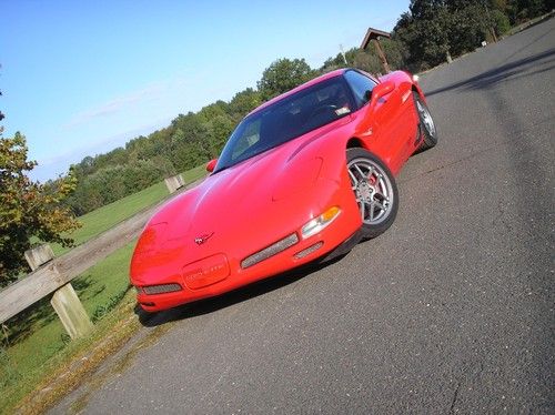 Torch Red 2001 Chevrolet Corvette Z06 which I use for pleasure drives on weekends. I also enter it in local car shows and attend cruise nights with it. This is an absolutely gorgeous car with zero flaws that has never seen rain or snow. It is garage kept and covered in the garage. This car is the closest you will get to showroom mint condition. This was the first Z06 designated Corvette produced since the early 60's and was the fastest production Corvette ever to roll off the assembly line since 1953. This car has always been adult owned and driven and handles & drives like a dream. The car has new tires and a new Optima battery.