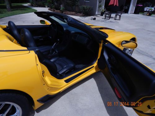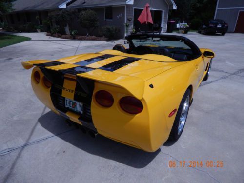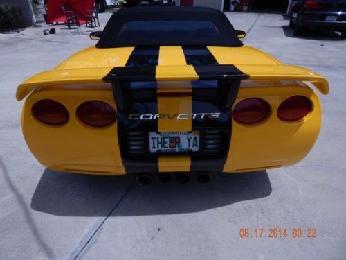 SIX SPEED CONVERTIBLE IN TOP SHAPE, LOW MILES, EXTRA CORSA EXHAUST, LOUD MOUTH ON THE CAR, DYNO TUNED, NEW TIRES AND BATTERY, TOP LOOKS LIKE NEW, TOP IS MANUAL, TAKES ABOUT 30 SECONDS TO DROP THE TOP, GARAGE KEPT AND COVERED, AS YOU CAN SEE BY MILEAGE THIS CAR IS RARELY DRIVEN, ZO6 WHEELS AND SIDE VENTS, REAR SPOILER, BEAUTIFUL CAR, THIS CAR COMMANDS ATTENTION WHEREVER I TAKE IT. I HAD THE STRIPES ADDED AND HAD DYNO MAT ADDED TO THE INTERIOR