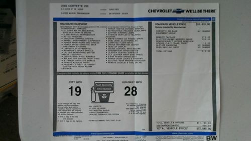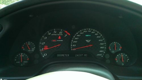 It has a battery tender installed and is run regularly to keep everything in excellent condition. The engine is unmodified/stock. Only changes I made to the car were to install the black "Corvette" lettering on the rear of the car as well as install color decals on the door sills. Also, the car has the Bose sound system. I had an Ipod hook-up hard wired into the center console with a separate on/off button. Unfortunately since this time, none of the radio channels come in as clear as they did. I figure the new owner can remove the Ipod hook-up or change it as they see fit. Also included with the car is the original window sticker. Two sets of 50th Anniversary keys as well as a Z06 car cover with bag. Clean/clear title in hand. Email for more photos or any questions. Feel free to make an offer. |
