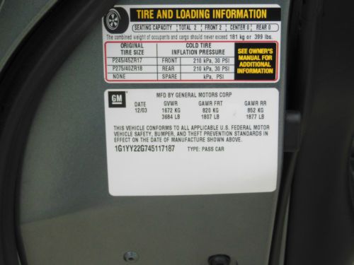 Vehicle was purchased from the first owner with 8200 miles, now has 12,100 miles, and has been garage kept. It is in excellent condition and has the additional options: 12-Disc CD Changer (Remote), New Double Logo Floor Mats and Cargo Mat, Rear Cargo Shade Cover, Chrome Door Sill Plates, Heads-Up Display, 6-Speed Manual Transmission, Short Throw Shifter, Chrome Shift Knob w/6-Speed Pattern, High Polished Aluminum Wheels, Body Side Moldings, Front and Rear Blackout Kit, Front and Rear Chrome Lettering Set, Corsa High Performance Exhaust, Body Color Targa Top, and Storage Cover. Also have original window sticker. Shipping and payment: $500 deposit required, balance due payable within 72 hours. Buyer responsible for pickup and shipping. |