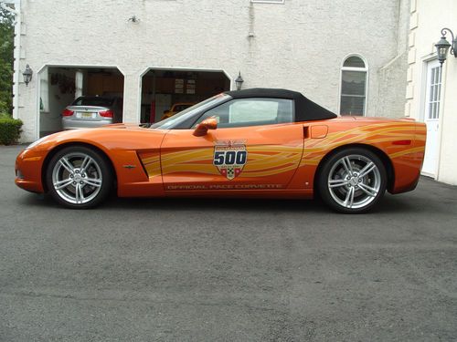 Flawless one owner Indy Pace Car Edition convertible. #323/500. Popular 2007 model featured in Atomic Orange over Ebony leather. Owned by a multiple Corvette owner. Absolutely no excuses on this perfect example with just 15k miles. Always garaged and never driven in rain. Fully equipped with everything you expect including navigation, heated leather, BOSE stereo, and much more. Completely original with all badges. Only change is the upgraded Corsa Extreme exhaust and x-pipe. Additional items include original window sticker, all books and cd/dvd, factory build sheet, custom car cover, Pace Car hat, etc. None nicer than this one, a rare chance to own a better than new example.