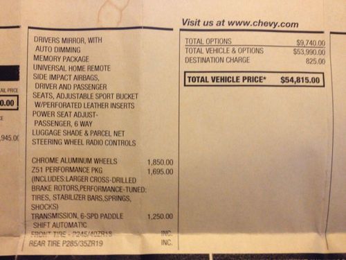 Z51 PERFORMANCE PACKAGE 1,695.00 OPTION