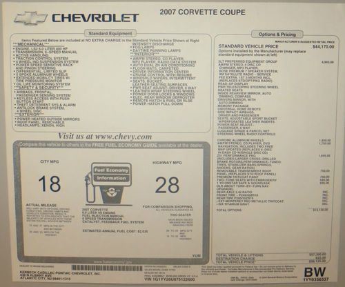 2007 Chevrolet Corvette Coupe 3lt Z51 With Gm Bumper-to-bumper Extended Warranty on 2040-cars