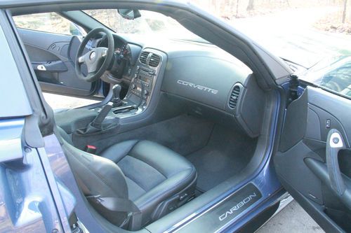 This 2011 Chevrolet Corvette Z06 Carbon Edition is car 27 of a limited production run of 253. The car is Supersonic Blue with black accents on the mirrors, front and side splitters and headlights. It is a very low mileage vehicle and has been meticulously maintained. All services are up to date and fluids are fresh. The owner has had two previous Z06s, a 2007 and 2009, and this is by far his favorite of the three. He is only selling it because he is currently building a new house. This car is the ultimate Corvette, combining the chassis, suspension and carbon ceramic breaks of the ZR1 and the lightweight power of the LS7. You will not be disappointed. Serious inquiries only, send all offers to bigstuff3@comcast.net.