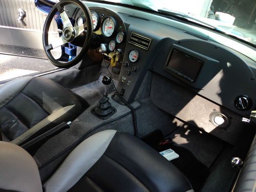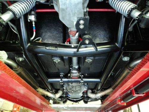 Full tube chassis with C4 corvette suspension QA1 shocks with coil overs . Power Wilwood brakes with cross drilled and slotted rotors . A 87 Corvette power steering rack was used for its quick steering ratio , 2 turns lock to lock . it handles like the road race car it looks like yet provides a good ride . The engine is a GM performance parts LS3 called the hot cam it has a nice lopy idle but still runs its ac with no problems . This motor makes 480 hp !!! yet is as docile as a minivan around town . A t56 6 speed trans was used for the variety of ratios and versatility , a bullet off the line and fuel economy on the top end . Tach reads 1800 rpm @ 100 mph in 6th gear . Delivers about 25 mpg with easy driving . A dual mode exhaust system was installed with electronic splitters , quiet mufflers inboard and 4 inch open tubes outside . Nice and quiet on the highway running through the mufflers but really loud when you send the exhaust through the open tubes . Really gets you noticed pulling into the car show with its loud choppy idle , really completes the look and sound . car weigh's 2760 lbs with full fuel . This thing will stand toe to toe with my Z06 . My Z makes 505 hp with 3125 lbs and this little monster weigh's 2760 with only 25 less hp .