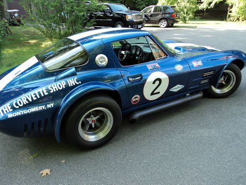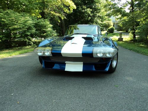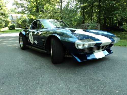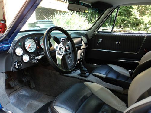 About the car , Was built from a 64 coupe using D/D body work . A full chrome moly tube cage was constructed and bonded to the fiberglass shell for the ultimate in safety and rigidity a 4 point roll bar was added for additional safety. Production doors were used so power windows could be added . Extensive sound deadening was installed throughout as well as truck bed lining applied to the underbody to further cancel out road noise . The body fit and finish is impeccable . deep water blue and performance white stripes. Vintage racing decals were added to complete that vintage race car look.