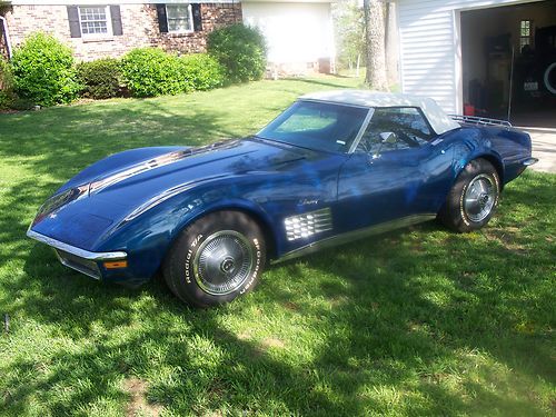 You are looking at my 1971 corvette convertible that I have owned for the last eleven years. The car has 30,017 miles so I have driven the car 1,751 miles since I have owned it. The original owner purchased the car in my home town and drove it for seven years when he traded it in at the local chevrolet dealer. The second owner purchased it at the local dealer and kept the car in his family till I purchased it from him December of 2001. The car has never been in an accident nor has it been in the rain for the last seventeen years. I would call this a survivor and it's a very good example of what a 1971 corvette looked like when new. To my knowledge the only things on the car that aren't original are the tires, exhaust, convertible top, carpet, battery and bridgehampton blue paint. (The second owner had the car repainted in 1981 due to paint fade). The car also has the hard top option which is desirable to some. It runs and drives outstanding and the transmission is the last year of the C-3 four speed. If you are considering an early corvette this one you should look at. The reserve is set well below the value of the car. I will attempt to answer any questions you may have on the car at 270-559-8330.
