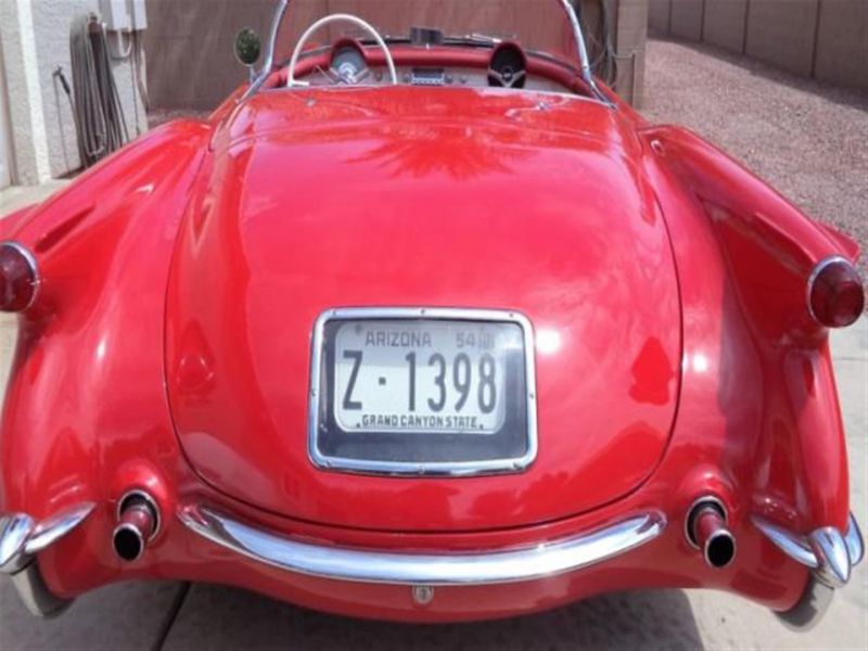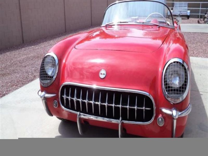 1954 Corvette Red/Red all matching numbers; Engine pad # 0669653 F 54 YG cast # 3835911Cylinder head 3836241 Date E 13 4 Starter 1108035 Date 4 E 20Distributor 1112314 Date 4 B 08Transmission E 11 4Bell housing D 21 4Rear end MW 4 27Radiator 3130953 Date 54 ECarburetors 2066 SBF Goodrich P215 75 R15 radial tires Runs & drives good, transmission shifts great, all gauges work including radio, wipers, turn signals etc. Has original side curtains in original bag, paint shines nice, Has all original engine shielding, original radiator, original wheels, hub caps etc.