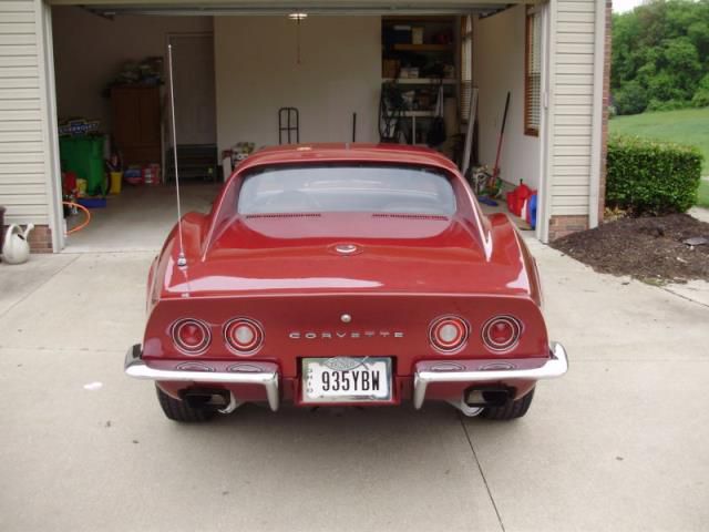Numbers Matching 1970 Corvette Stingray LS5 Coupe 4-Speed in the original factory color, Marlboro Maroon exterior with a dark brown interior. This Corvette was always garaged and is equipped with the very powerful LS5 454 (390hp / 500 ft lbs of torque) and a 4-speed transmission. A low power-robbing option car, this Corvette is equipped with power steering, manual brakes and factory alarm system (not functioning). It has 91,750 original miles (~2,000 from restoration) and is very beautiful to look at close up or far away. The exterior paint and trim are excellent. This Corvette was meticulously stripped and repainted and the body restored (frame-on) to the original factory color, Marlboro Maroon, in 2009 by Gerald's Hot Rods in New Paris, Indiana. Gerald also rebuilt the headlamps, replaced the weatherstripping and door hinges and installed new (American made) rear bumpers.