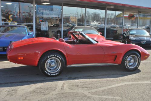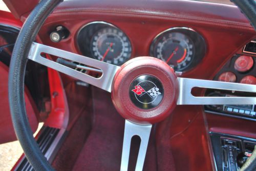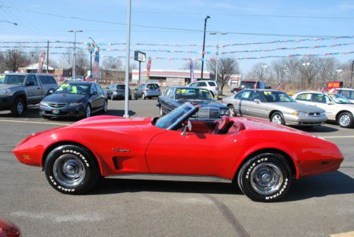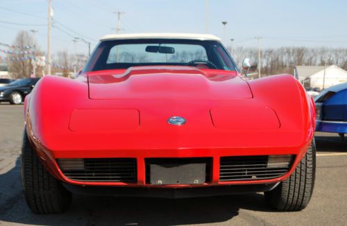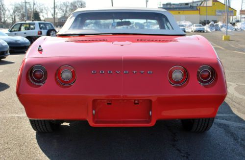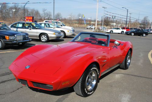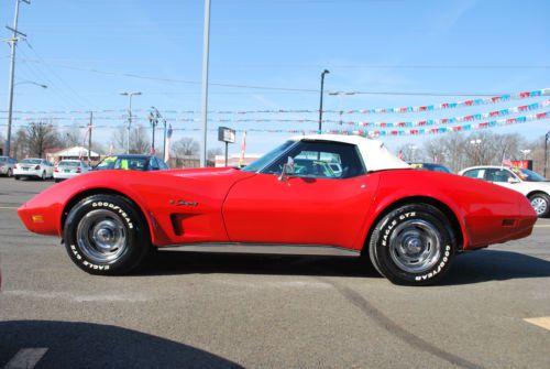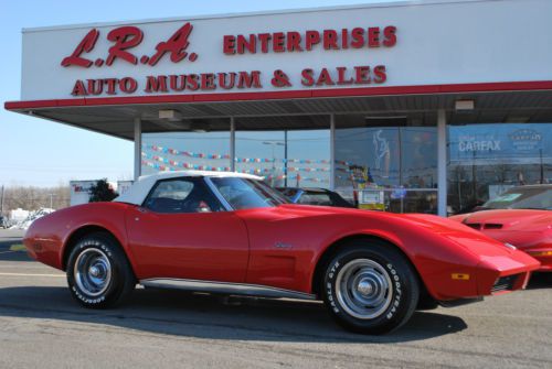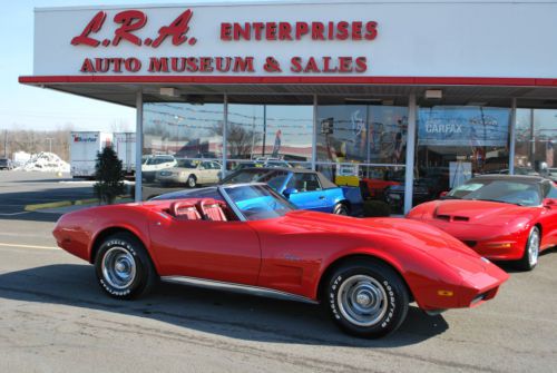 HERE IS A 1974 CHEVY CORVETTE CONVERTIBLE THAT IS IN EXCELLENT CONDITION. THE CAR HAS BEEN GARAGED KEPT AND ONLY HAS 46K ORIGINAL MILES ON HER. THIS IS AN ALL NUMBER MATCHING CAR THAT WILL ONLY GO UP IN VALUE. AS YOU CAN SEE FROM THE PICTURES THE CAR HAS BEEN WELL TAKEN CARE OF OVER THE YEARS. THE EXTERIOR OF THE CAR IS IN GREAT SHAPE WITH THE PAINT SHINING BRIGHT AND CLEAR. THE TIRES ARE IN PERFECT CONDITION. ALL THE GLASS IS CLEAR AND THE VEH. HAS ITS ORIGINAL BEAUTIFUL APPERANCE. THE INTERIOR IS AS CLEAN AS THE OUTSIDE WITH NO RIPS OR TEARS IN THE SEATS. THE DASH HAS NO CRACKS OR DISCOLORATION.THE CARPETS ARE CLEAN AND STAIN FREE.ALL POWER OPTIONS FUNCTION AS THEY SHOULD INCLUDING, A/C , HEAT, AND PWR WINDOWS, THE V-8 350 MOTOR IS QUIET AND STRONG.THE CAR WAS JUST TUNED UP WITH NEW PLUGS AND WIRES. WE HAVE GONE OVER THE CAR AND SAFETY CHECKED HER AND SHE IS READY TO GO. WE ALSO CARRY A NUMBER OF CLASSIC AND MUSCLE CARS THAT ARE FOR SALE. VISIT OUR WEBSITE AT LRA AUTO AND SEE SOME REAL NICE CLEAN AUTOMOBILES FROM DIFFERENT ERAS. WE ARE SELLING THIS CAR AT NO RESERVE SO HIGH BID WINS. CAR IS ALSO FOR SALE LOCALLY SO WE DO RESERVE THE RIGHT TO END THE AUCTION EARLY. ANY QUESTION PLEASE CALL ME AT 267-475-4000, THANKS FOR LOOKING, BILL |