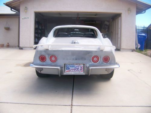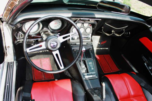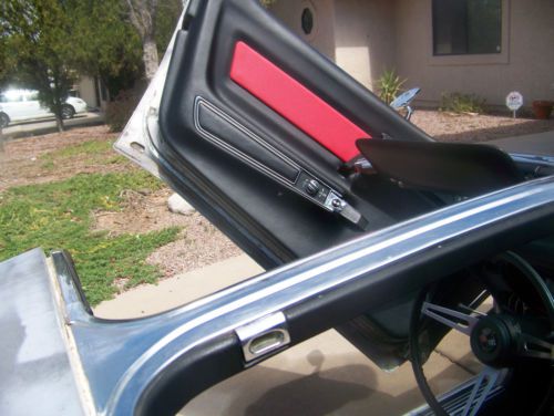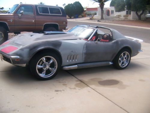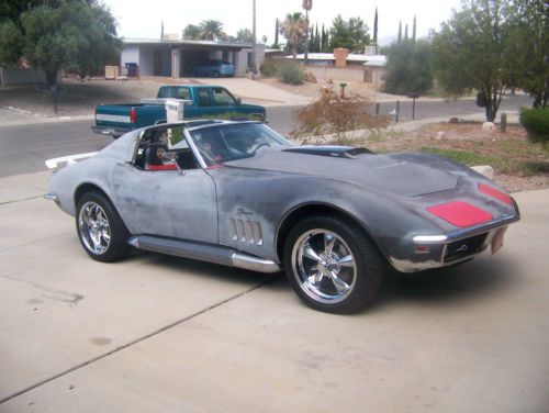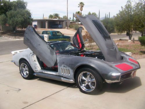 FOR SALE EARLY 69 CORVETTE STINGRAY CUSTOM,ORIGINAL BLOCK/HEADS 350CI,ORIGINAL M21 4 SPEED TRANNY,ORIGINAL REAREND,COMPLETLY REBUILT TILT/TELESCOPIC COLUMM,3INCH CUSTOM SIDE EXHAUST W/CERAMIC COATED HEADERS,EARLS FUEL FITTINGS/HOSE CONNECTED FROM ORIGINAL CLEANED AND CHECKED AND COATED GAS TANK TO EARLS LINE AND FILTER TO EDELBROCK ELEC FUEL PUMP TO ORIGINAL STEEL LINE UNDER VEHICLE TO EARLS AGAIN IN ENGINE BAY,1 1/2 IN EDELBROCK FUEL PRESSURE GAUGE,FILTER TO EDELBROCK AVS 800 CARB W/3IN FUEL PRESSURE GAUGE,MSD DIGITIAL E-CURVE DISTRIBUTOR,WIRES,MSD STARTER,NEW MCLOUD CLUTCH W/BILLET STEEL FLYWHEEL JUST INSTALLED,18 IN WHHEELS,779 MILES SINCE IVE PUT BACK TOGETHER,UNDER A 100,000 VEHICLE,WENT THROUGH A FRAME UP RESTO IN THE 90S,HAVE SOME PICS ON THAT,WENT TO ANOTHER OWNER,KINDA GOT NEGLECTED AND TORN APART,THEN I GOT IT,AND WALA!! SERIOSLY JUST NEEDS BODY/PAINT,ORIGNALY CORTEZ SILVER,BUT FOUND THAT OUT AFTER I WENT RED IN THE INTERIOR,WHICH SUCKS BECAUSE SILVER AND BLACK WOULD BE SWEET,AND NOT HARD TO CHANCGE SEATS AND DOOR PANEL INSERTS,BUT BLACK AND RED ARE ALSO SWEET TOO!!BUT PAINT TO YOUR COLOR,HAVE ALL THE SEALS/RUBBER/FELTS ETC FOR ONCE ITS PAINTED,EVERY THINGS PRETTY MUCH NEW,REGISTERED..ITS LOAD,STRAIGHT 3IN SIDE EXHAUST,THE COVERS NEED RECHROMING,BUT THE INSULATORS ARE IN MINT CONDITION,FUNTIONAL HOOD SCOOP W/TURN SIGNALS,AMPMETER PHANTOM GAUGES,EVERYTHING WORKS,DOOR LOCKS SHAVED,BUT PAINLESS HARNESS HAS WIRING TO INSTALL POWER ONES,WAS WAITING TO INSTALL WITH ALARM SYSTEM ETC.STAINLESS HINGED LAMBO DOORS.90 % OF THE NUTS AND BOLTS HAVE BEEN REPLACED WITH STAINLESS WHERE APPLICABLE,HAVE OVER 37.000 IN RECIEPTS,MY LOSS YOUR GAIN,PLEASE ASK ANY QUESTION OR EVEN CALL 520 551 8926 ASK FOR (TC),AS I KNOW IVE LEFT OUT THINGS,BUT SERIOUSLY TO MUCH TO LIST,AND PICTURES DONT DO IT JUSTICE!!! THANKS FOR LOOKING..TC