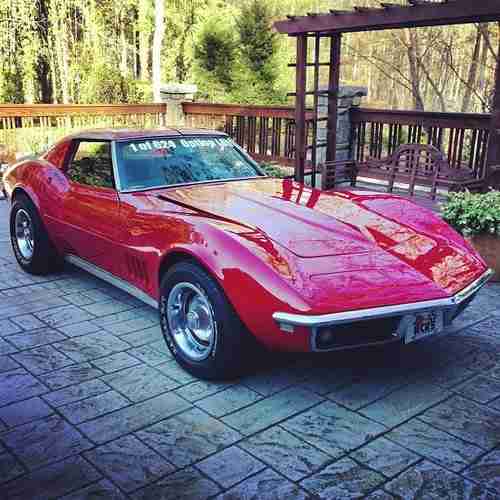 Rare 1968 Chevrolet Corvette Coupe (1 of 624) optioned with Aluminum Cylinder Heads (L89) when ordered with the L71 Big Block 435hp engine. Other options include: Black Leather interior, Transistor Ignition, Head Restraints, Off Road Exhaust, F41 suspension, AM/FM Radio, 3.70 Rear End Ratio. The original color was Corvette Bronze and now is painted red and is driver quality with a small block hood. No rust or frame repair! The transmission is original to the car but the engine has been replaced with a small block 400. The motor runs great!