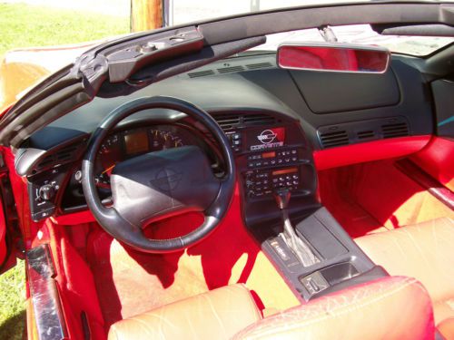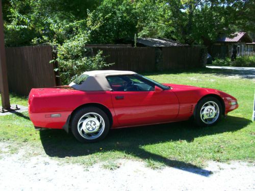 very nice 1994 torch red on torch red 61000 mile corvette convertible well maintain by owner paint is flawless if there is a scratch i have yet to see one very very nice you wont be disapointed the only things i see wrong are the air could blow a little colder and it most likely needs the e brake cable replaced other than that the leather seat show alittle wear never been in snow or poor weather dash radio windows and everything else works as it should thanks for taking time to look at this great car drive it home to anywhere tires are like new clean title in hand