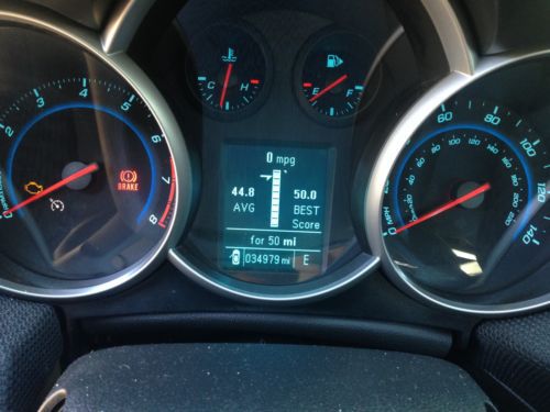 I am selling my 2012 Chevy Cruze. I have a k&n cold air intake system, the rest of the car is stock. The interior is in good shape. No rips, tears or stains. The exterior has minor rock chips on the front of the car but as for the rest of the body it is in really good shape. Car was just used to drive to and from work on the interstate everyday. I no longer am in need of it because I received a company vehical. This car has never been smoked in, never had pets and has been taken very good care of. It gets around 36 to 40 mpg on the highway and around 20 in town, (from what I've experienced). I still have it financed so it may take a couple of days for the buyer to get the title after the car has been bought.