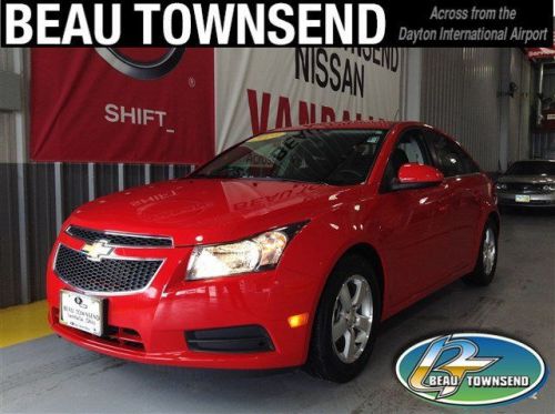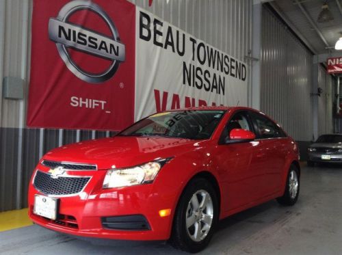 Cruze 1LT, 4D Sedan, ECOTEC 1.4L I4 SMPI DOHC Turbocharged VVT, 6-Speed Automatic Electronic with Overdrive, FWD, Red Hot, Jet Black Cloth, Air Conditioning, Alloy wheels, BLUE TOOTH, Clean Vehicle History Report, Dual front impact airbags, Dual front side impact airbags, Fully automatic headlights, Knee airbag, Low tire pressure warning, Overhead airbag, Premium Cloth Seat Trim, Rear side impact airbag, Remote keyless entry, SiriusXM Satellite Radio, Split folding rear seat, Steering wheel mounted audio controls, Telescoping steering wheel, Tilt steering wheel, Traction control, and USB PORT. This 2014 Cruze is for Chevrolet lovers looking far and wide for that perfect, fuel-efficient car. It is nicely equipped with features such as Cruze 1LT, 4D Sedan, ECOTEC 1.4L I4 SMPI DOHC Turbocharged VVT, 6-Speed Automatic Electronic with Overdrive, FWD, Red Hot, Jet Black Cloth, Air Conditioning, Alloy wheels, BLUE TOOTH, Clean Vehicle History Report, Dual front impact airbags, Dual front side impact airbags, Fully automatic headlights, Knee airbag, Low tire pressure warning, Overhead airbag, Premium Cloth Seat Trim, Rear side impact airbag, Remote keyless entry, SiriusXM Satellite Radio, Split folding rear seat, Steering wheel mounted audio controls, Telescoping steering wheel, Tilt steering wheel, Traction control, USB PORT, 6 Speaker Audio System Feature, 6 Speakers, ABS brakes, AM/FM Stereo w/CD Player/MP3 Playback, Brake assist, Bumpers: body-color, CD player, Delay-off headlights, Driver door bin, Driver vanity mirror, Electronic Stability Control, Emergency communication system, Front anti-roll bar, Front Bucket Seats, Front Center Armrest, Front reading lights, Front wheel independent suspension, Illuminated entry, Leather Shift Knob, MP3 decoder, Occupant sensing airbag, Outside temperature display, Panic alarm, Passenger door bin, Passenger vanity mirror, Power door mirrors, Power steering, Power windows, Radio data system, Rear seat center armrest, Rear window defroster, Security system, Speed control, Speed-sensing steering, Tachometer, Trip computer, Variably intermittent wipers, and Voltmeter. Beat down the pain at gas pumps today with the ideal daily driver. FREE MAINTENANCE! Get scheduled maintenance for 2 years or 24,000 miles on Certified Pre-Owned Nissans. Exclusive online offer. Contact us through Cars.com about this vehicle to confirm availability and receive your maintenance certificate. Certificate must be presented at time of purchase for BTnissan Loyalty Plus Maintenance Program enrollment.